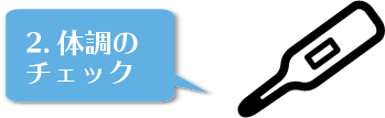 看護職員が血圧、脈拍、体温を測定し、体調に問題ないかどうかを確認します。(所要時間:約40分)