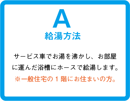 訪問入浴車で看護職員、介護職員の三人がご自宅にお伺いします。